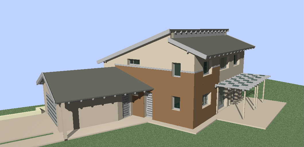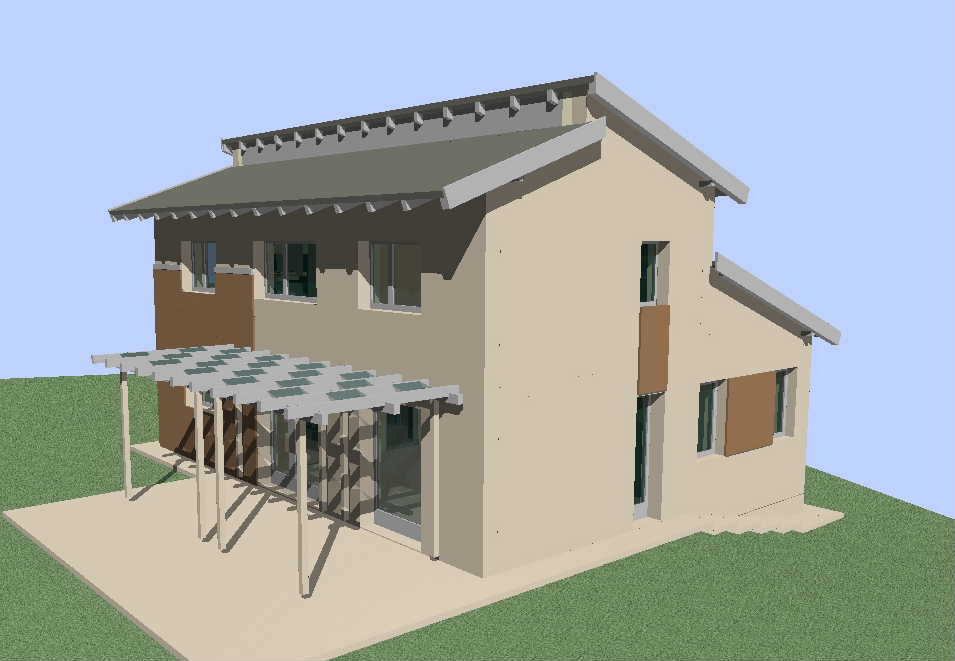 – a tervezőtől a tető megfelelő túlnyújtását kértük (jelenleg is olyan lakásban lakunk, ahol a tető túlnyúlása nyáron megakadályozza, hogy a déli napsütés fölmelegítse a szobákat, télen viszont a tető alatt a napsugarak fölmelegítik a lakást, ilyenkor a fűtés ritkán kapcsol be)