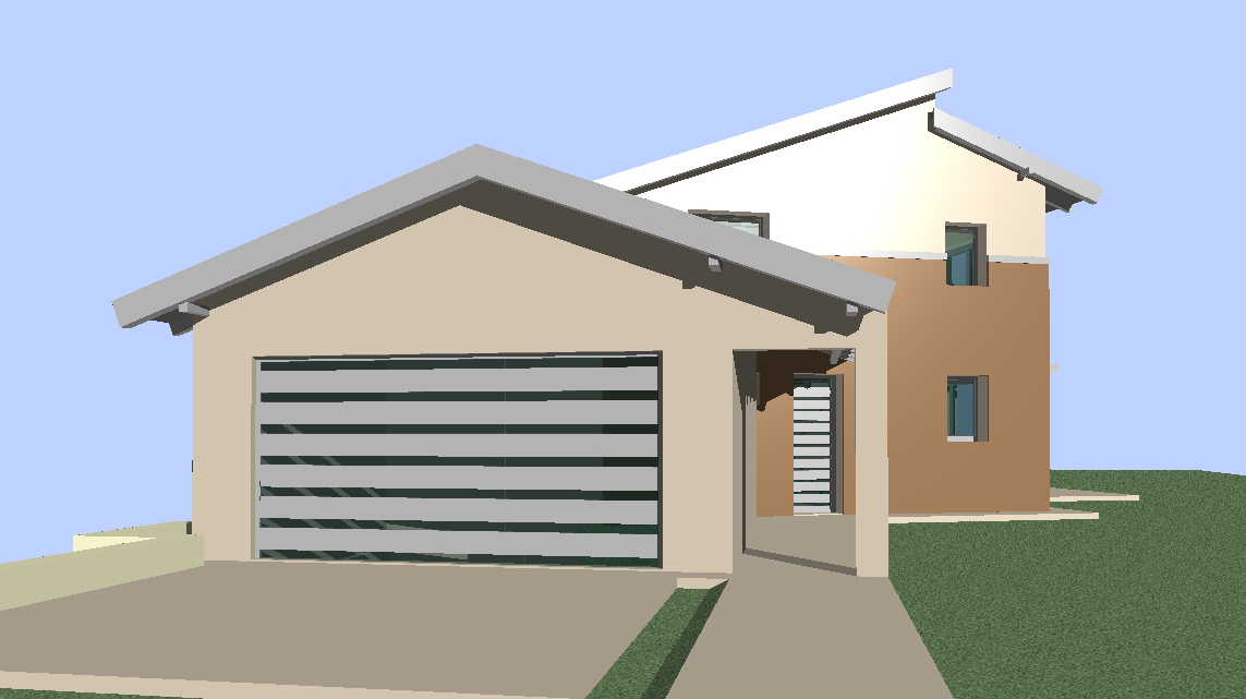 És szerintem egy ilyen egyszerű kompakt tömeghez jobban passzolna. Habár én továbbra is pártolom a nyitott, fedett beállót, sokkal könnyedebb, és itt egyébként sem szervesül a garázs a házzal, hiszen a rajz és a levél szerint teljesen külön fog épülni.