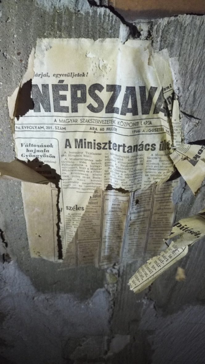 Annyit még hozzátennék, hogy egy toldalék – vélhetően egy szenespince tetején volt, nem könnyen megközelíthető helyen. Illetve a „BBC dokufotó – hitelességi szabályait” megszegve kicsit megbontottam az alsó oldalt, hogy látható legyen a dátum, lapszám. Ennyiben a fotó nem teljesen hiteles, mert nem tökéletesen ebben a formában vészelte át azt az 51 évet.